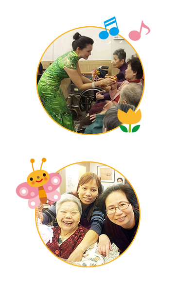 • 養老院專職的社工人員以及工作人員每天都會和長者說說話,並規劃簡單的復健小遊戲和居民同樂